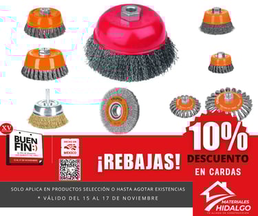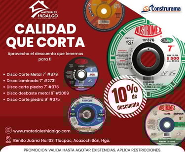 En Materiales Hidalgo te damos un 10% DE DESCUENTO en discos de corte y desbaste.
